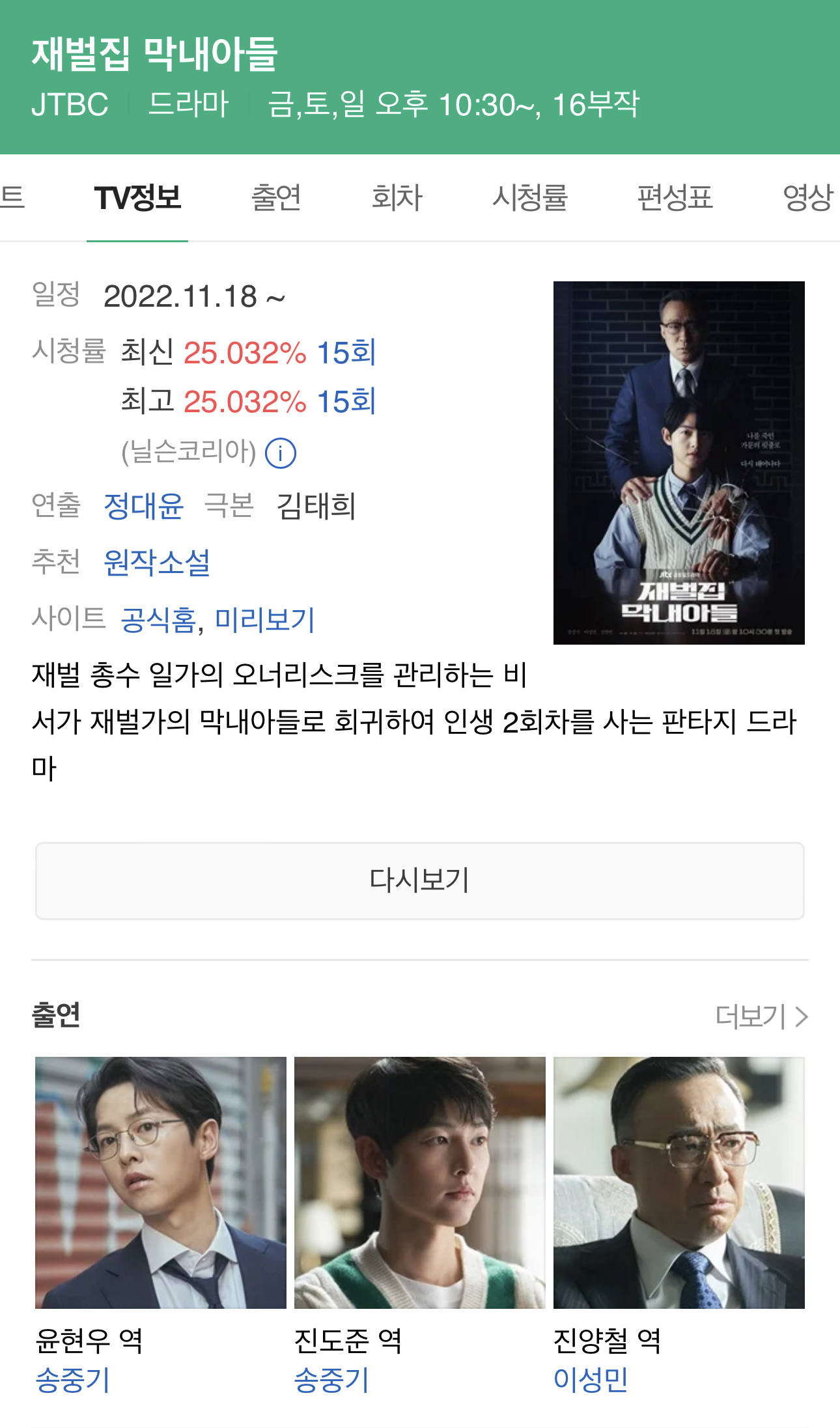 재벌집 막내아들 마지막회 종영은 오늘 25일 오후 10:30 JTBC에서 방영됩니다.